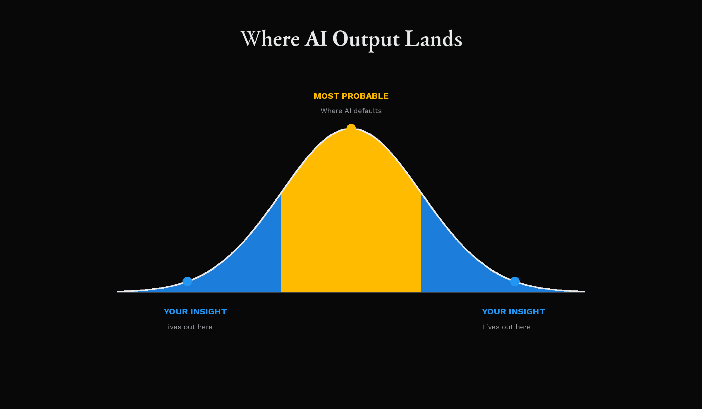 The most probable answer is the one that fits the patterns best. It's the average of everything the model has seen. It's the consensus view, the safe take, the thing that would get a B+ on an exam. It's rarely the insight that changes how someone sees a problem.