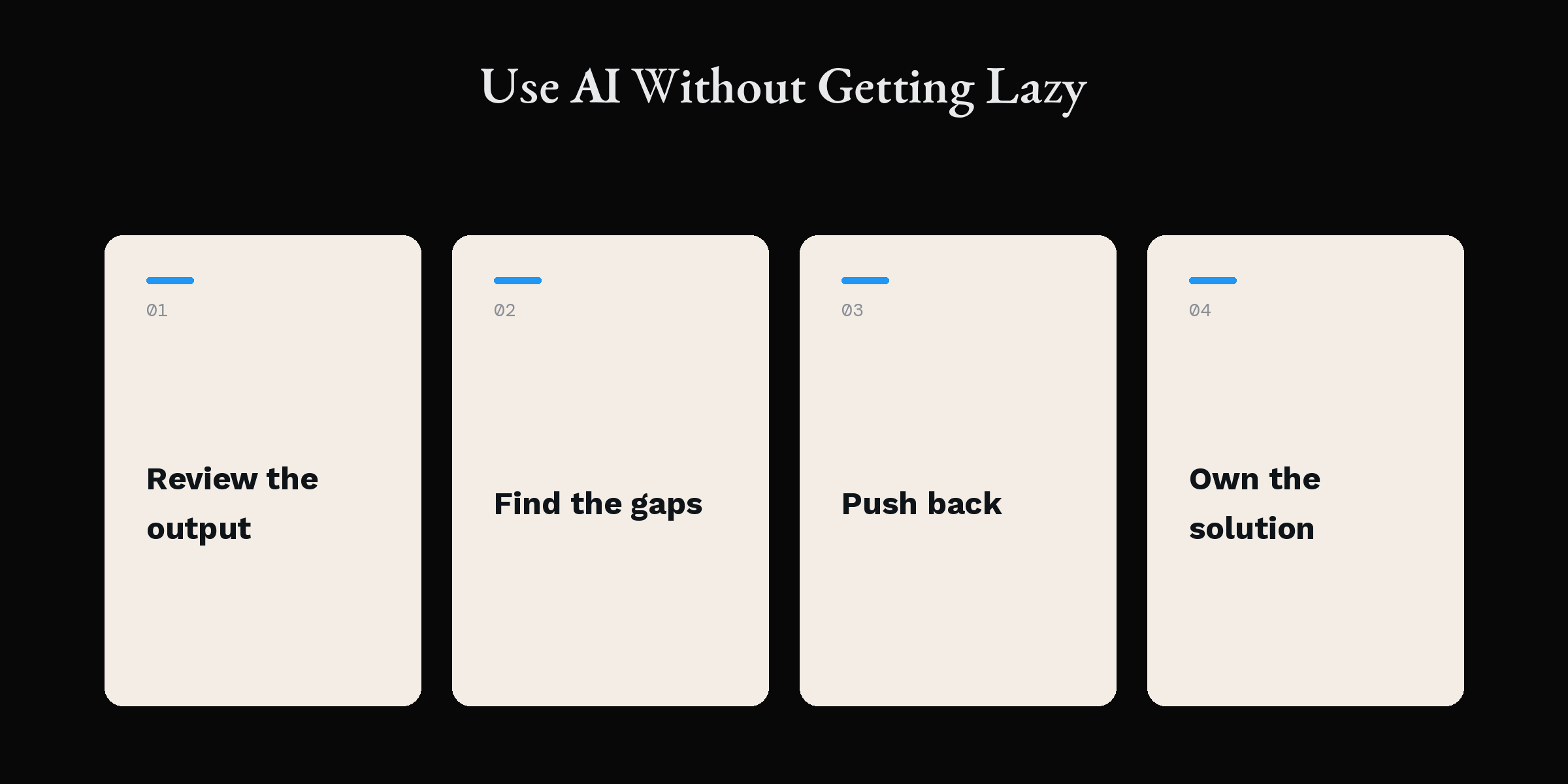 The question isn't whether to use AI. Use it. Lean on it. Let it accelerate your work. I'm a proponent of AI.